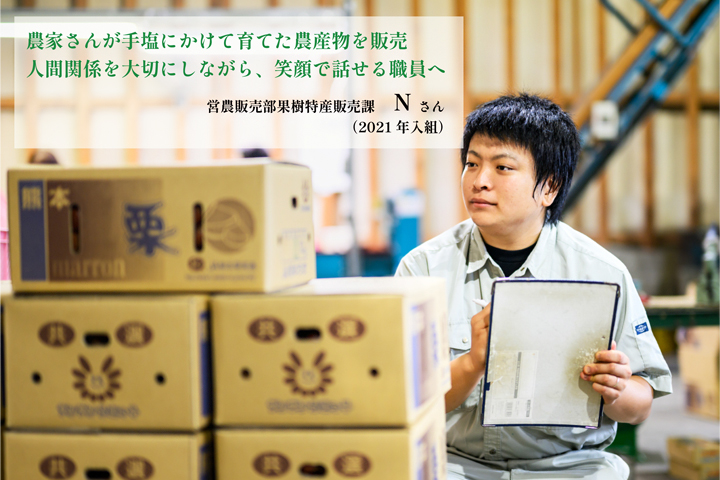 農協への入組を決めたきっかけは、実家が不知火地区にあり、幼い頃から農家さんとの関わりが多かったことから、地元の農業に貢献したいという思いで入組を決めました。入組後は不安もありましたが、先輩方の指導もありスムーズに業務に取り組むことができました。