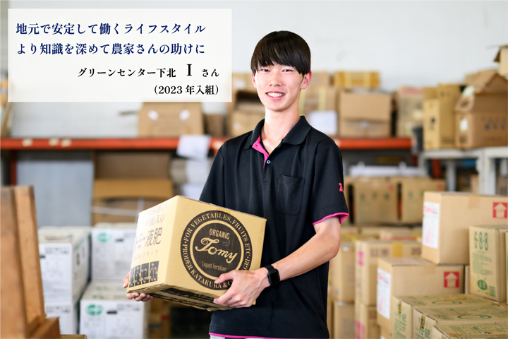 購買店舗であるグリーンセンター下北で、接客や肥料の販売に関する業務を担当しています。就職活動をしていた時に、地元で働きたいという思いや、近所の農家さんの手助けをしたいという気持ちが強くなり、JAへの入組を希望しました。